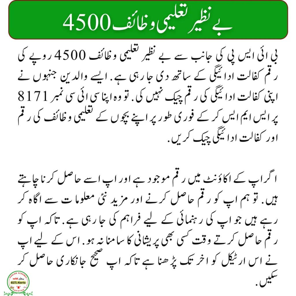 Benazir Taleemi Wazaif Payment 4500 Update 2025