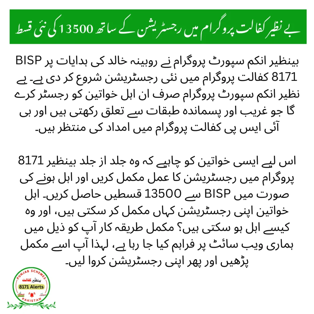 Therefore, such women should complete the registration process in the Benazir 8171 program as soon as possible and get 13500 installments from BISP if eligible. Where can eligible women complete their registration, and how can they become eligible? The complete procedure is being provided to you below on our website, so you should read it completely and then get your registration done.